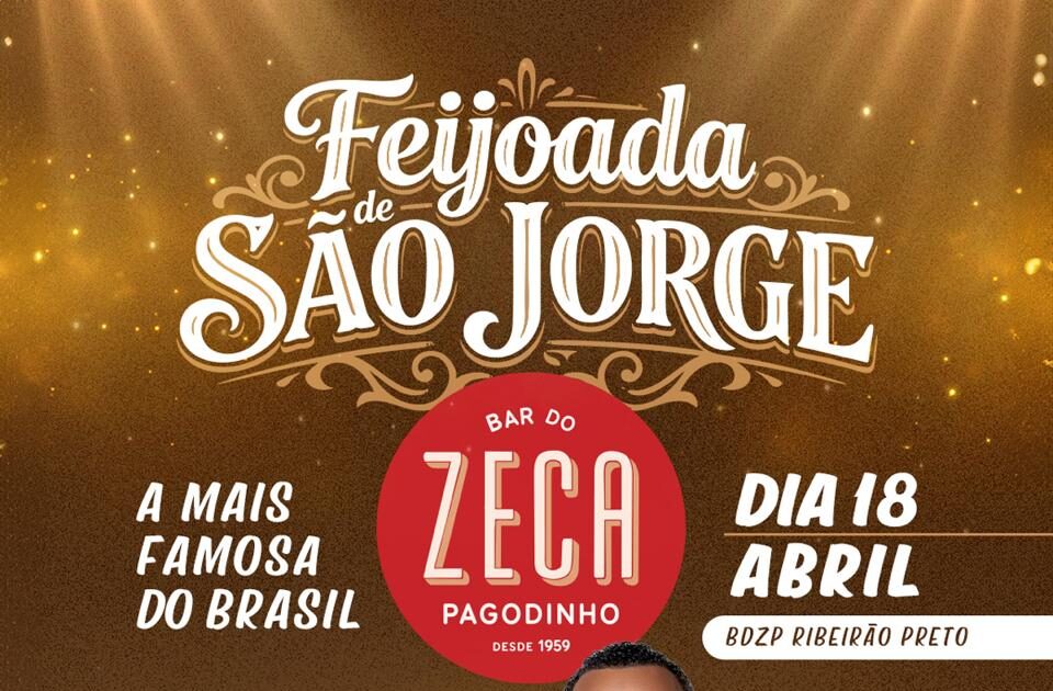 Ribeirão Preto recebe, no dia 18 de abril, uma das celebrações mais tradicionais da cultura brasileira: a Feijoada de São Jorge. O evento será realizado no Bar do Zeca Pagodinho, a partir das 13h, reunindo samba, gastronomia e devoção ao Santo Guerreiro em uma experiência completa para o público.